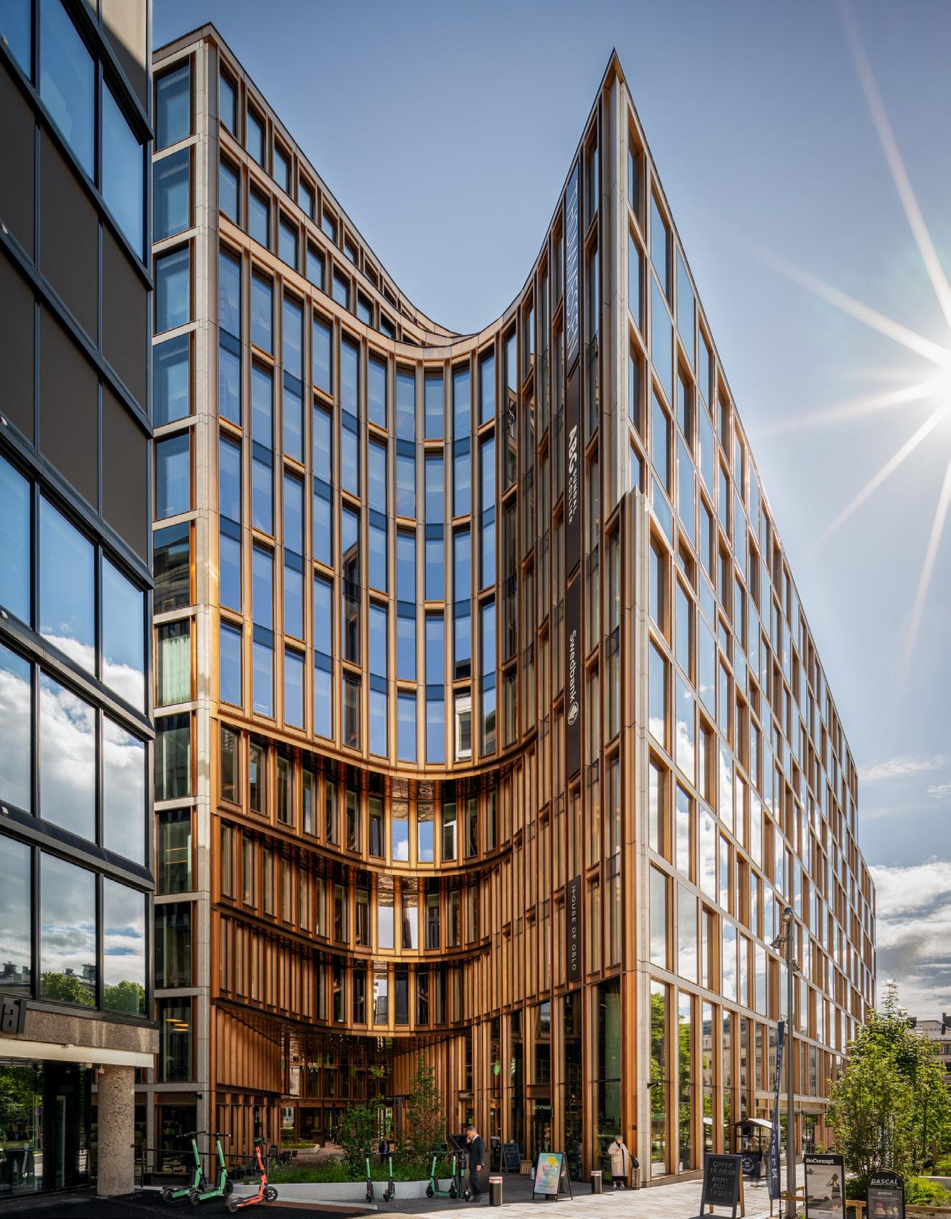 VIA VIKA puikiai įsilieja į aplinką – vos peržengus duris atsiveria fiordas, miesto kultūra ir pulsuojanti miesto gyvenimas. Architektūra su žėrinčiu fasadu prisideda prie gyvybingo miesto, kuriame viename pastate įsikūrė restoranai ir biuro patalpos.