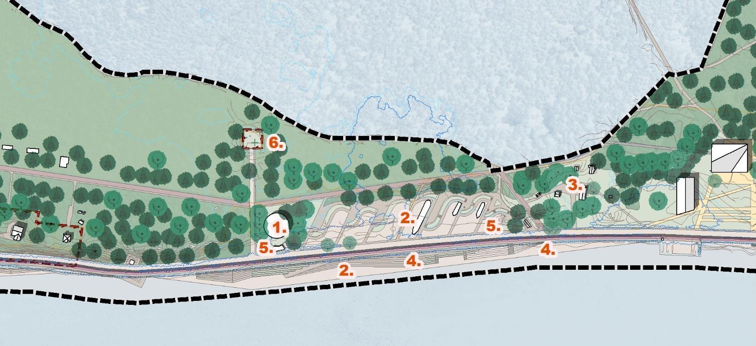 BOLLE MODULAR, UAB. WC ir konteinerinės dušo kabinos g/b atokesnėse vietose, dviračių ir pėsčiųjų trasų sankirtose, o ypač nacionalinio parko prieigose, nes pačioje parko teritorijoje jokie įrenginiai nėra numatyti.