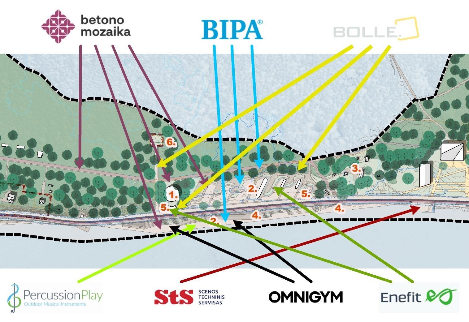 BIPA, UAB. Vaikų žaidimo aikštelės, treniruokliai, neįgaliųjų treniruokliai. Aktualu: 1. Ledų rago, 2. Perkėlos, 3. Dvasinės ramybės, 4. Jachtklubo, 5. Sunkaus paveldo, 6. Senosios perkėlos, 7. Laivų sektoriuose. 8. Kopgalio sektoriuje. Ypač piliavietės apžvalgose takams irDelfinariumo prieigomsapšviesti.