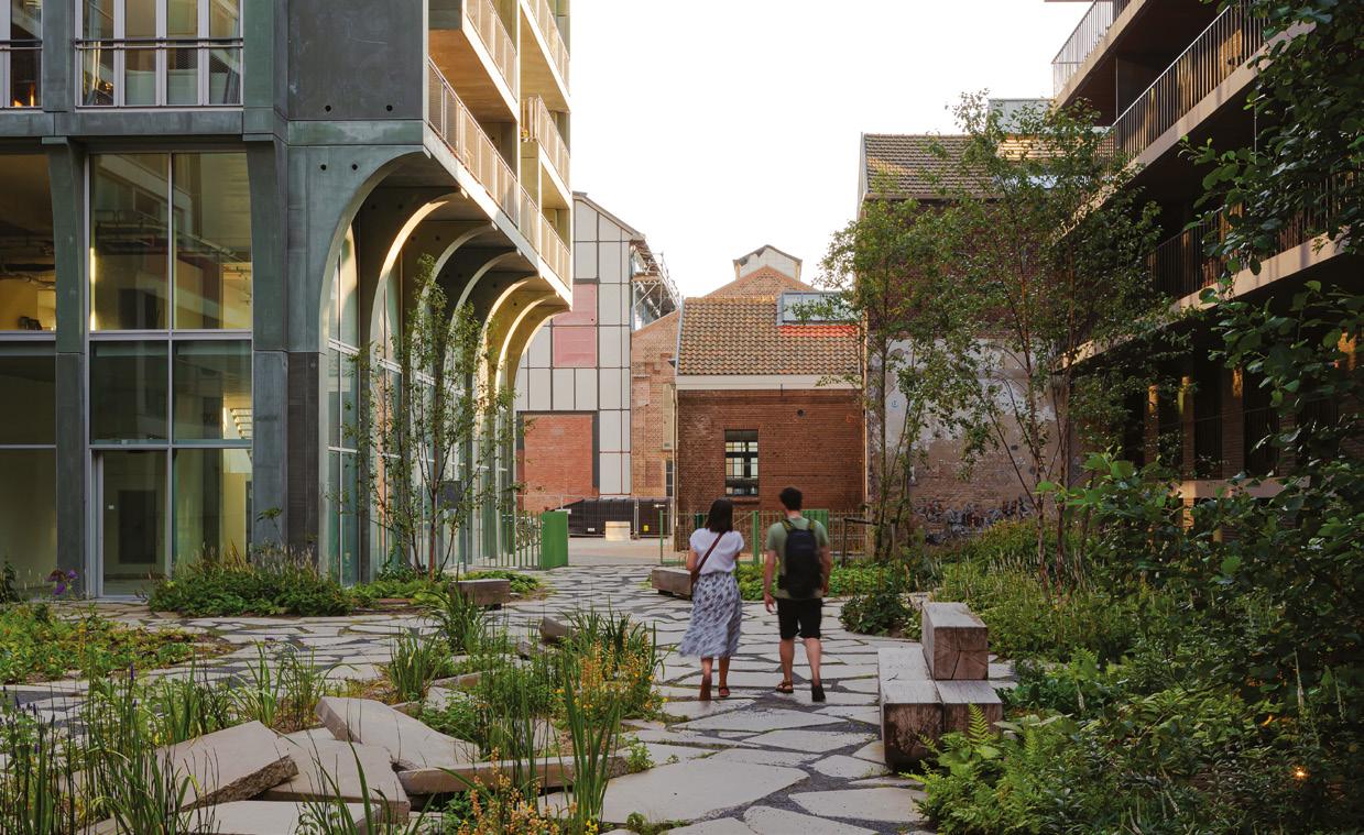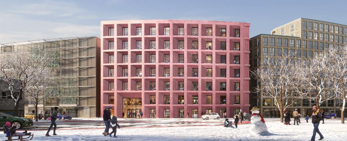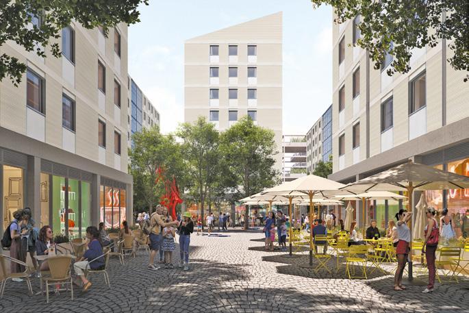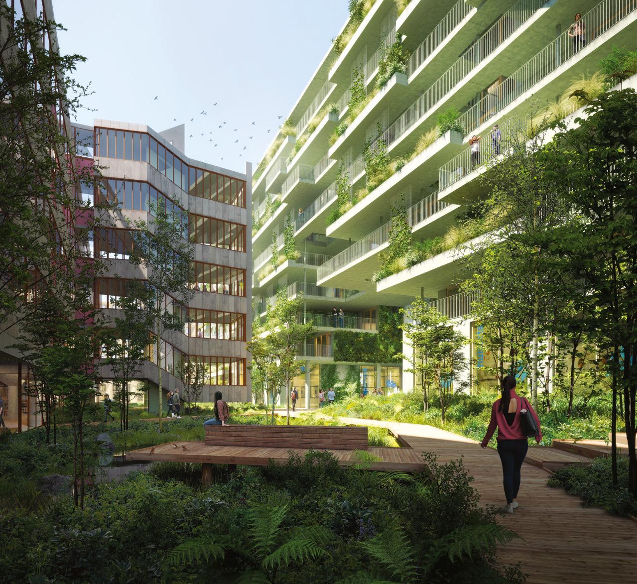 venamųjų namų vidinį kiemą. Statomas naujasis gyvenamasis 189 apartamentų namas orientuotas į miestiečių gyvenimo sąlygų gerinimą. Greta žaliuojantis parkas apartamentus saugos nuo gatvės triukšmo, ant stogų įrengtos terasos kvies kaimynus susitikti. Pastato statybinės medžiagos yra perdirbamos, o jis pats – išardomas. Tokia konstrukcija ir medžiagų pasirinkimu siekiama dvigubai sumažinti CO2 pėdsaką statybų metu.