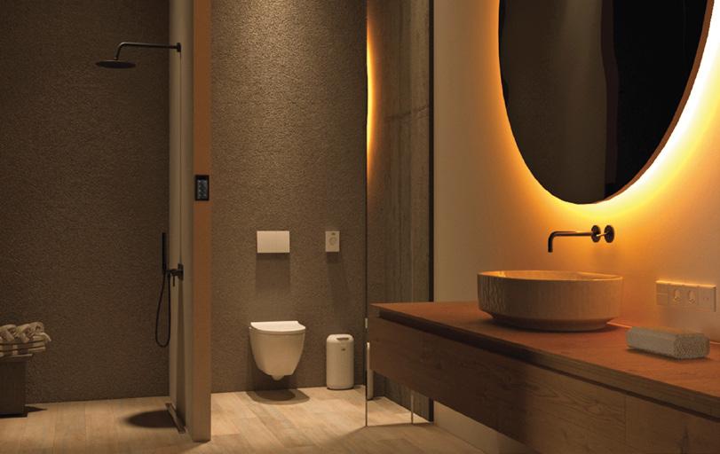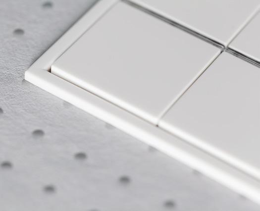 SCHOMBURG medžiagomis hidroizoliuotos ir dušinės. Kaip ir baseino prieigose, naudoti S1 elastingumo klasės plytelių klijai MONOFLEX ir vieno komponento hidroizoliacija SANIFLEX.