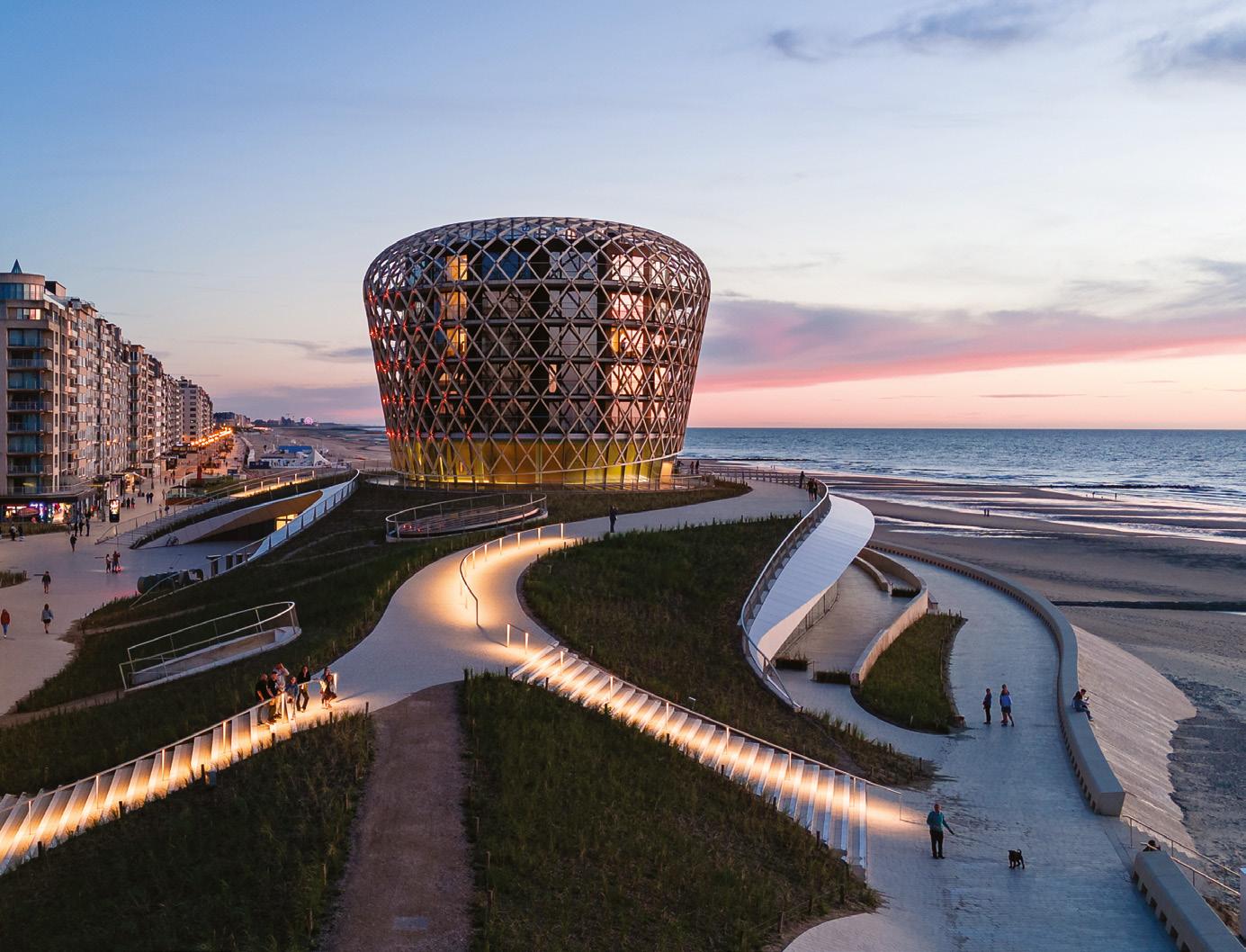 jektuotojų tikslų priedanga. Naująjį pastatą architektai traktavo kaip galimybę pagerinti potvynių rizikos valdymą, todėl infrastruktūriniai sprendiniai iš tikrųjų yra siena nuo didelių bangų. Požeminė automobilių saugykla taip pat veikia kaip pakrantės sutvirtinimo priemonė. Šešių aukštų pramogų erdvės – ant dirbtinės kopos stovintis kazino, restoranas ir renginių salės – atveria paplūdimio vaizdus. Kopos pusėje, atgręžtoje į miestą, suprojektuota permatoma siena, ženklinanti viešbučio pradžią. Pastatus sujungus su miestelio pakrantėje esančia „Epernay“ aikšte, padvigubinta viešoji erdvė su pakrante. „Epernay“ aikštėje uždrausta