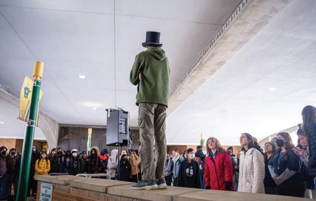 WE HAD A walkout for the MSU shooting, and it was kind of last minute. Everybody just kind of decided like fve minutes before, ‘Why not? Let’s go.’ It was very impactful to see how many came, and a lot of people spoke really beautifully. It’s a really sensitive subject, especially in the past year with the Michigan and Oxford shooting. But I think people reacted really well with the walkout.