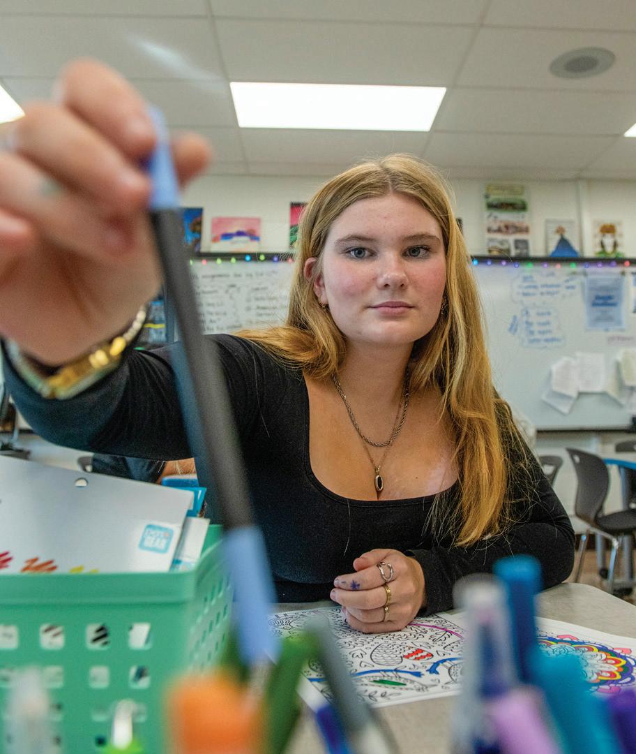 BELOW Sophomore Darcy Kroening tips the ball back over the net after receiving a bump from a teammate.