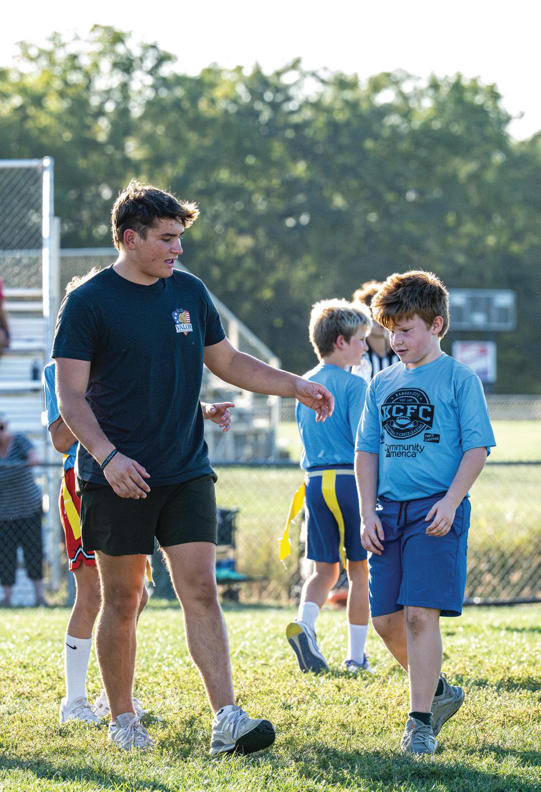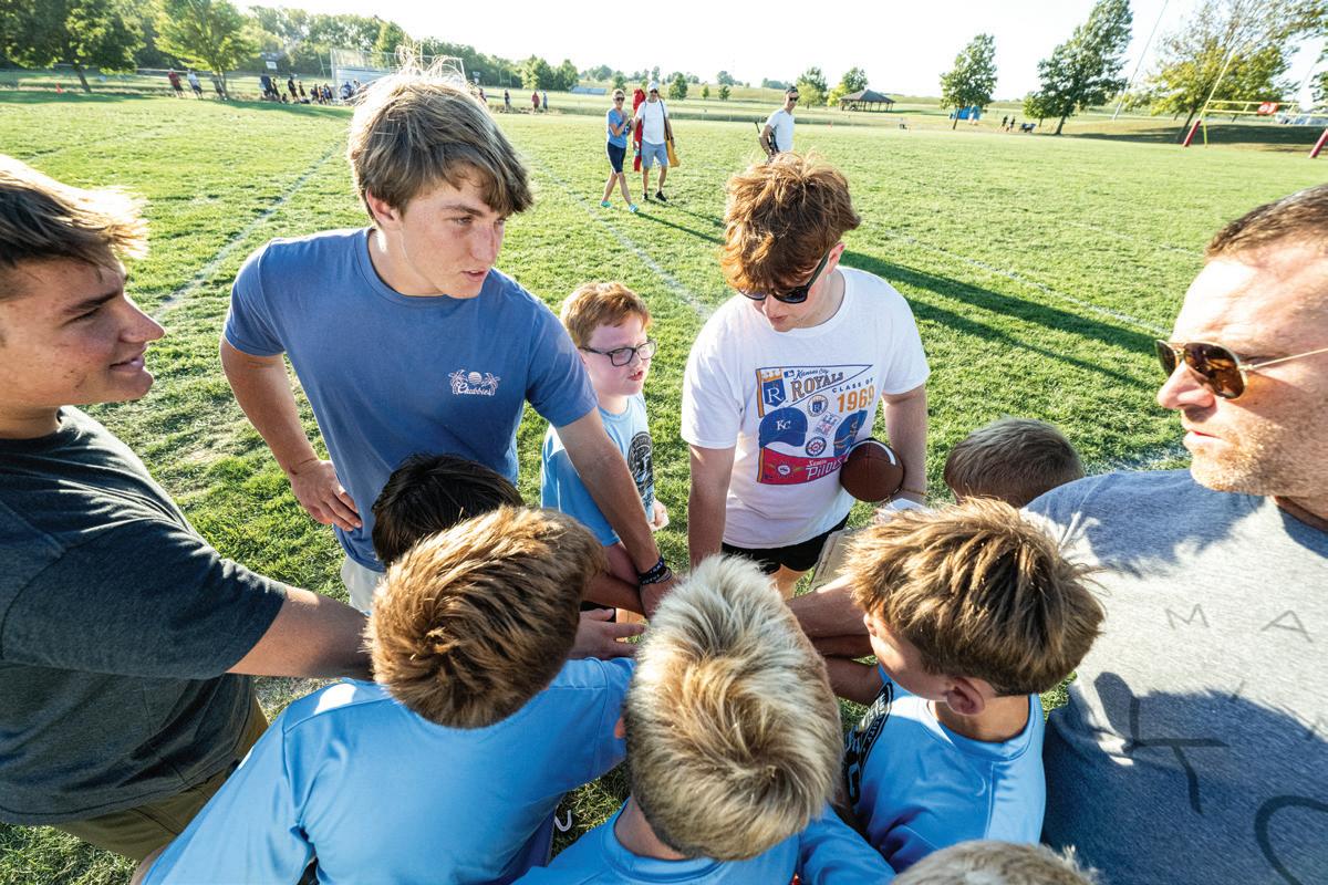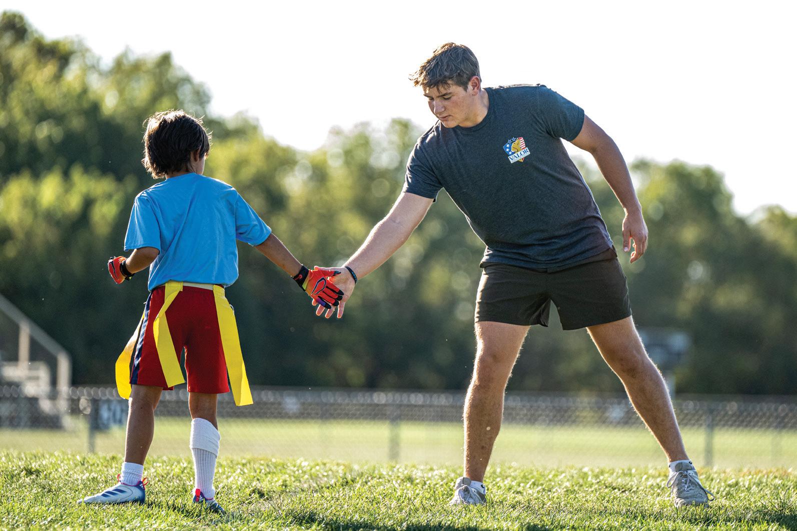 Three senior football players coach an elementary school flag football team, which serves as a way for them to inspire the future generation of SM East football