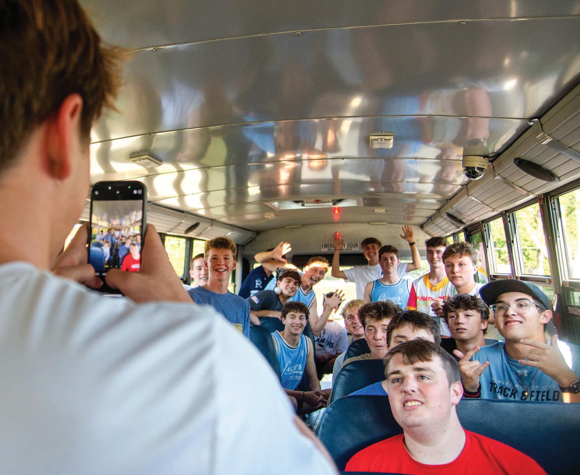 But the five defensive players weren’t listening; they were on the opposite side of the field, singing a song they learned that day in school — “Fifty Nifty United States” — with their defensive coach, senior Davis Eakes.