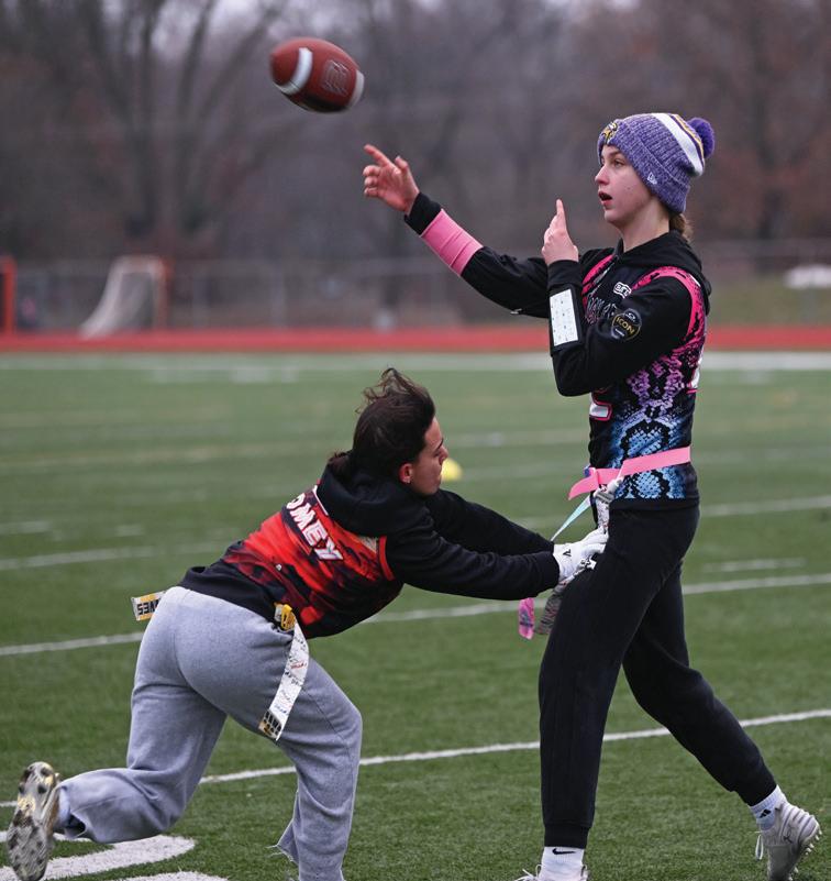 said yes. Eight years later, now a sophomore, Berg continues to play flag football as a quarterback for an all-girls team, the KC Shockers.