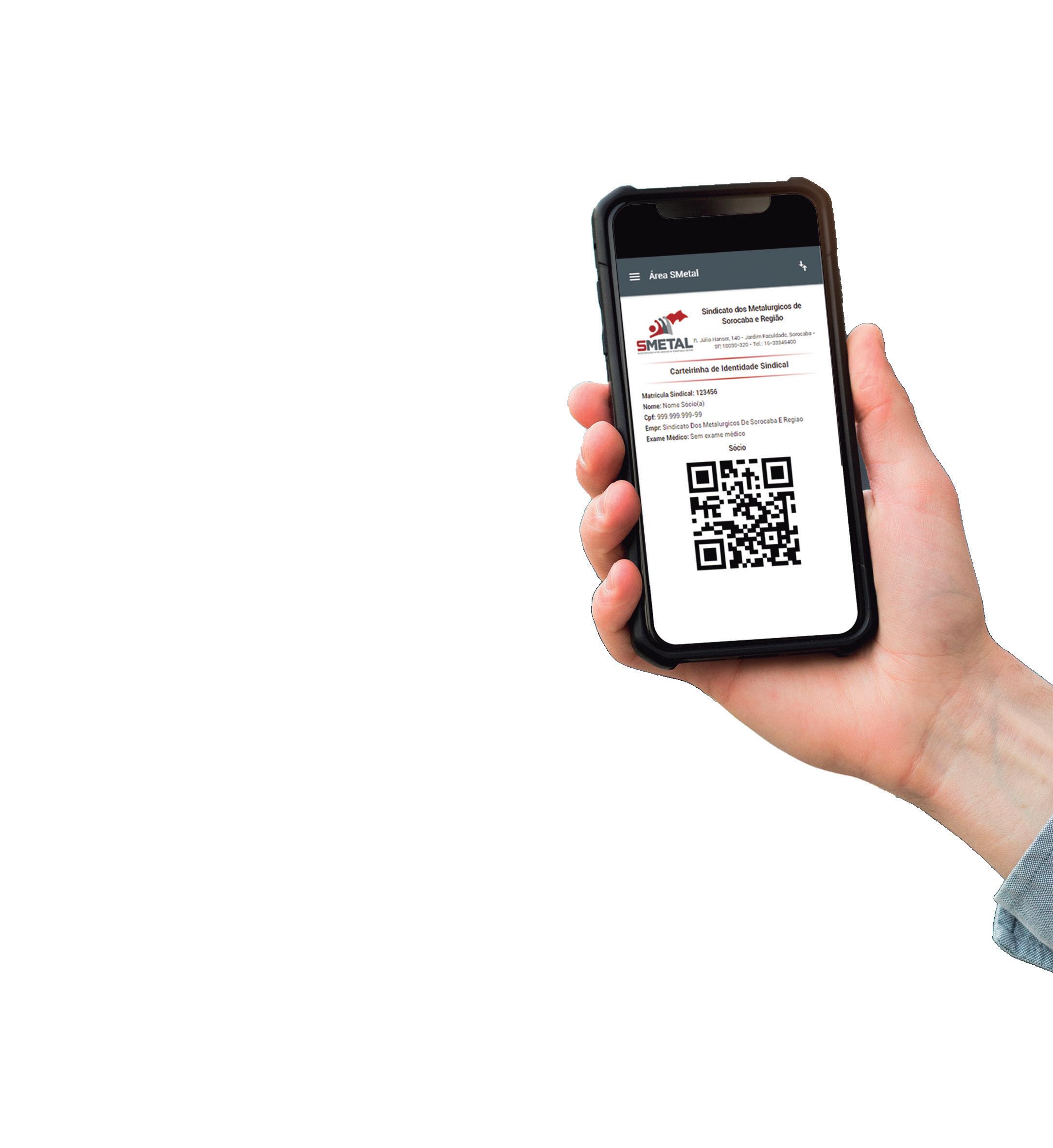 A carteirinha digital é acessada no celular e disponibiliza um QR code para liberar a catraca no Clube dos Metalúrgicos. Quem já fez a carteirinha não precisa passar pelo balcão no Clube, basta passar pela catraca. Na carteirinha do titular, é possível acessar a carteirinha de todos os dependentes.