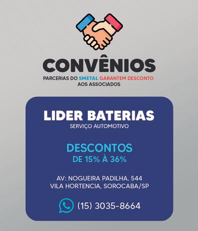Cel. (15) 99714-9534 (WhatsApp) Rua Júlio Hanser, 140 - Sorocaba SP www.smetal.org.br