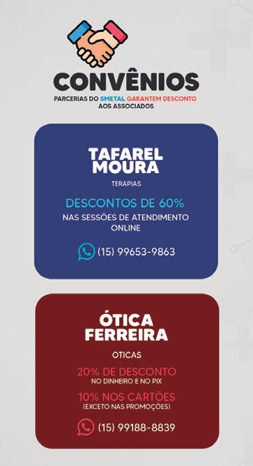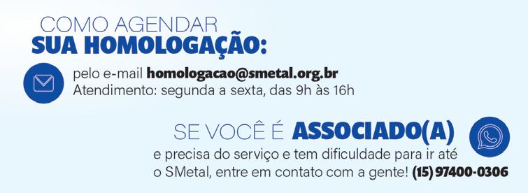 Sede Sorocaba: Tel. (15) 3334-5400 Cel. (15) 99714-9534 (WhatsApp) Rua Júlio Hanser, 140 - Sorocaba SP www.smetal.org.br