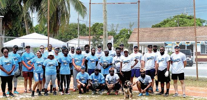 updates, seating, and a new concession stand. American Bridge Bahamas (AB Bahamas) led the work, organizing key suppliers and overseeing the improvements. Volunteers from the Tigers, Mosquitoes, Tarpum Bay Primary School, and local businesses helped to prepare it for Sunday’s game.