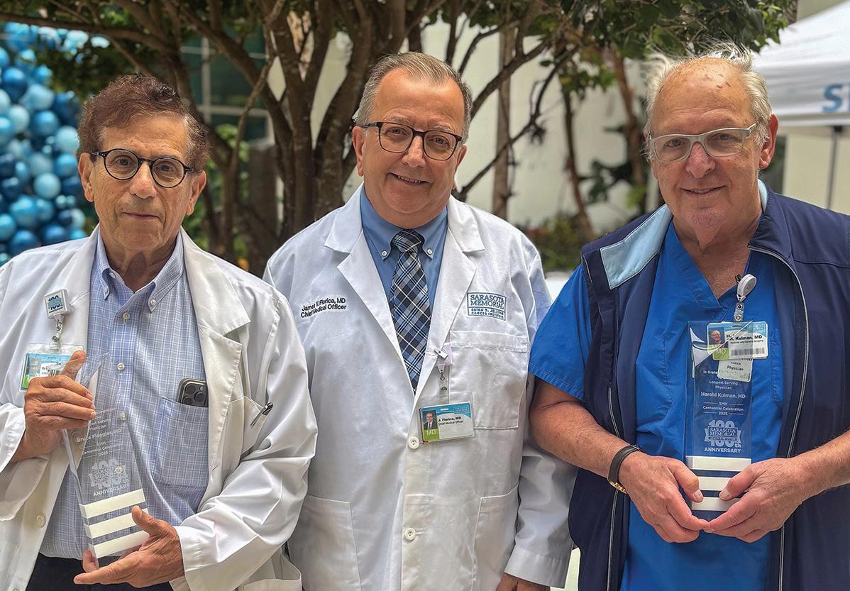 Chief Medical Officer James Fiorica, MD, recognized Bruce Fleegler, MD, and Harold “Hesch” Kulman, MD, SMH’s longest serving active physicians with distinguished 50-year careers at the hospital.