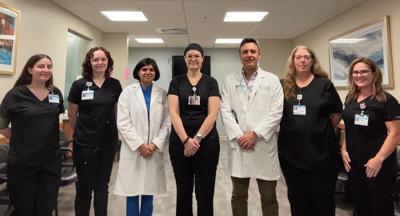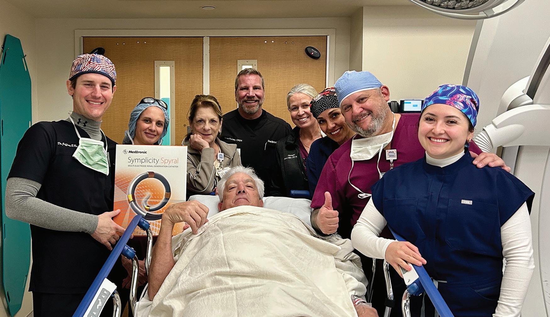 t Sarasota retiree Donald Fagan takes a moment to pose with interventional cardiologist Jeffrey Rossi, MD, and the SMH cath lab team following an outpatient procedure to treat his resistant hypertension.