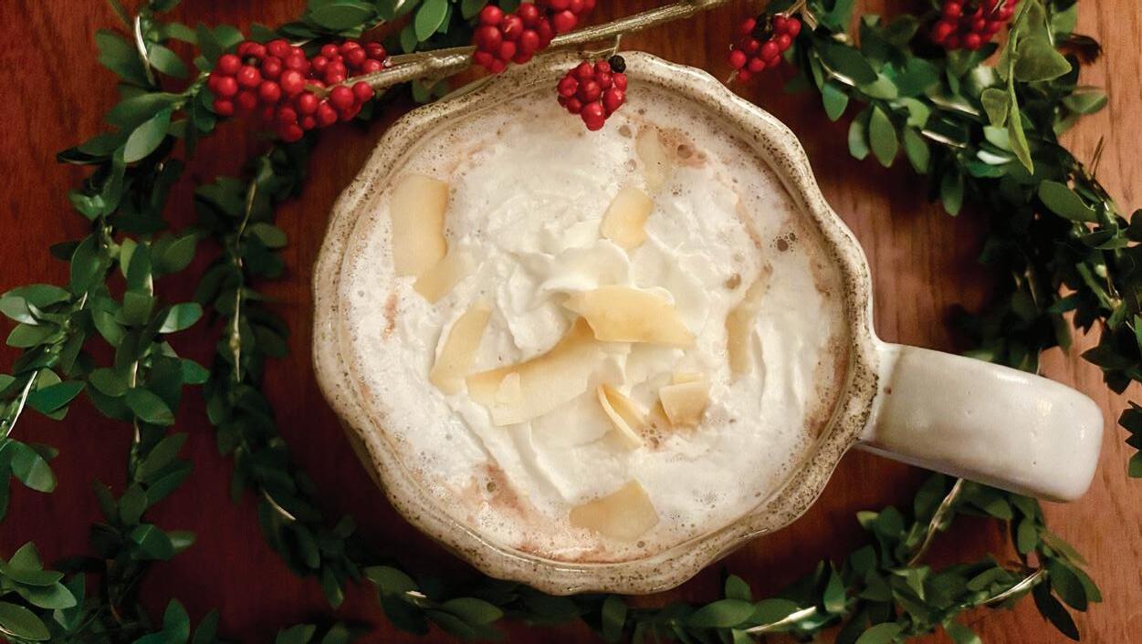 With forecasters calling for colder-thanaverage temps this winter, we are stockpiling ideas for winter beverages that will help us stay warm. Elevated with hints of coconut for a slight tropical nod, this hot cocoa is a great recipe to help fill your favorite holiday mug and warm your bones by the fire this season.