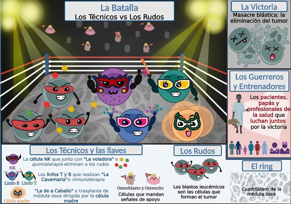 Suena extraño, ¿verdad? Pero dentro de nuestro cuerpo ocurren batallas que podrían compararse con un espectáculo de lucha libre En el caso de la leucemia, por ejemplo, nuestro sistema inmune protagoniza grandes enfrentamientos, como si nuestro cuerpo fuera una arena llena de acción