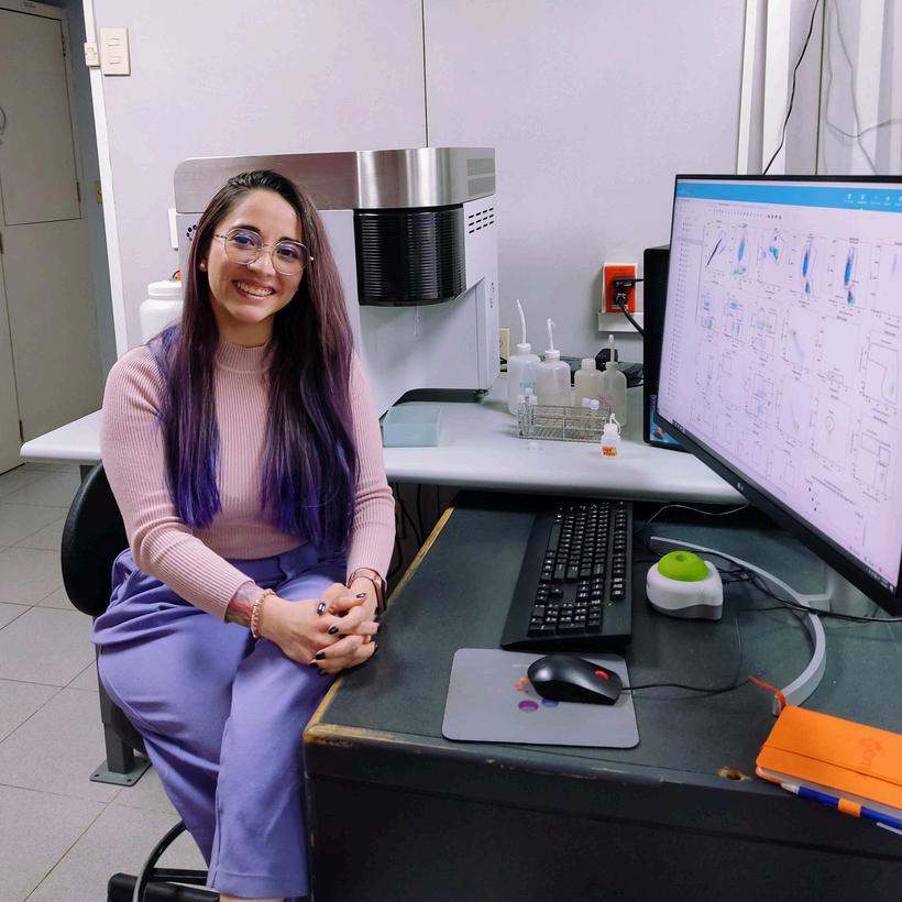 Personas que trabajan en los laboratorios manejando los citómetros, que son instrumentos que interrogan a las células, utilizando luz para obtener información de ellas.