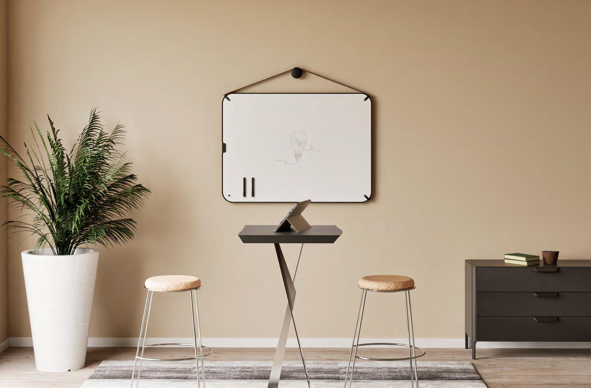 Verrijdbare whiteboards stimuleren samenwerking en een dynamische werkomgeving. Chameleon Mobile is minimalistisch ontworpen, met elegante skatewielen die verzonken in het frame één rijrichting mogelijk maken en het bord stevig laten staan tijdens het schrijven.