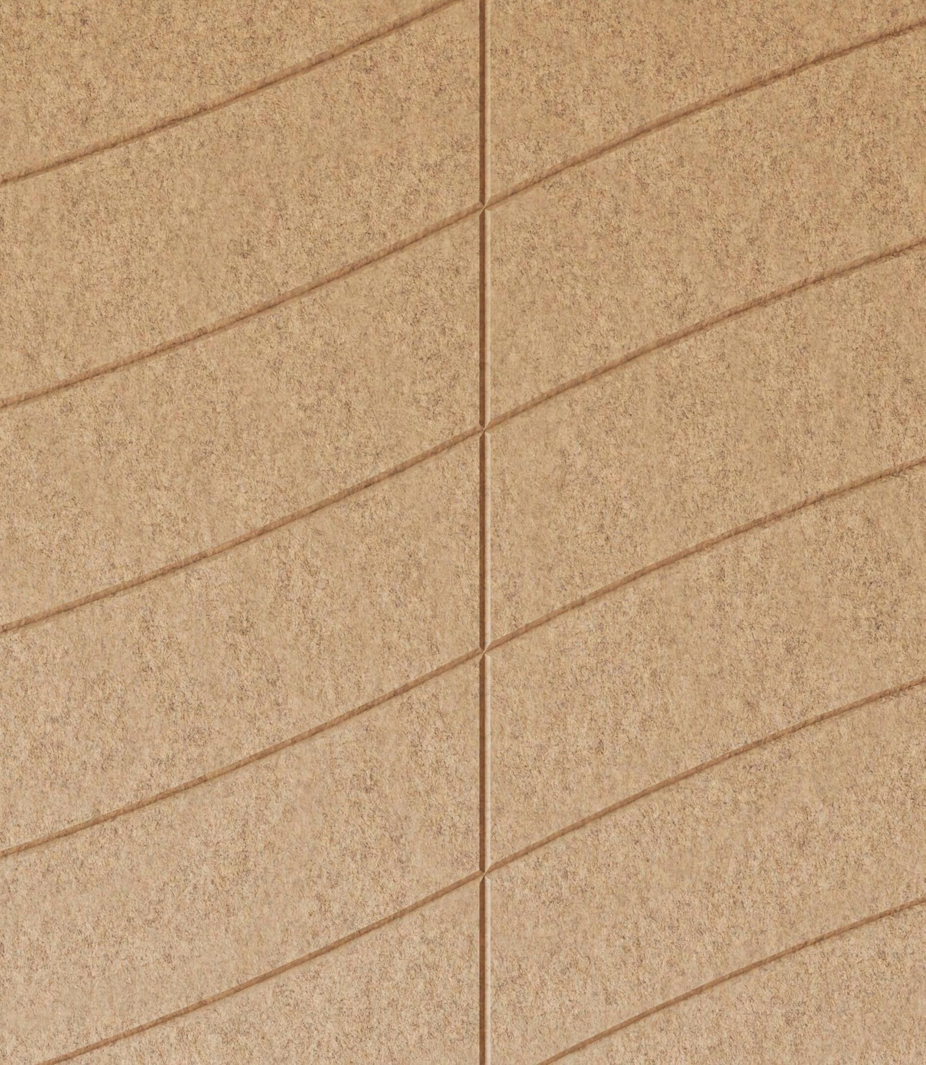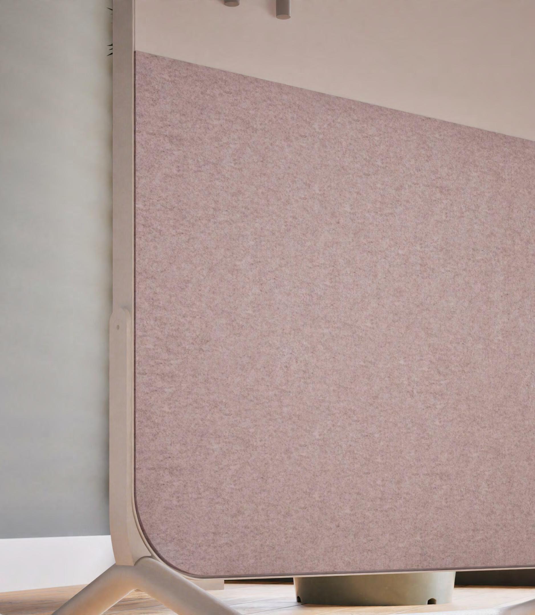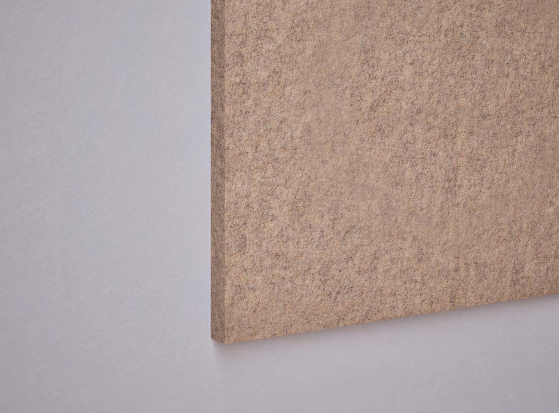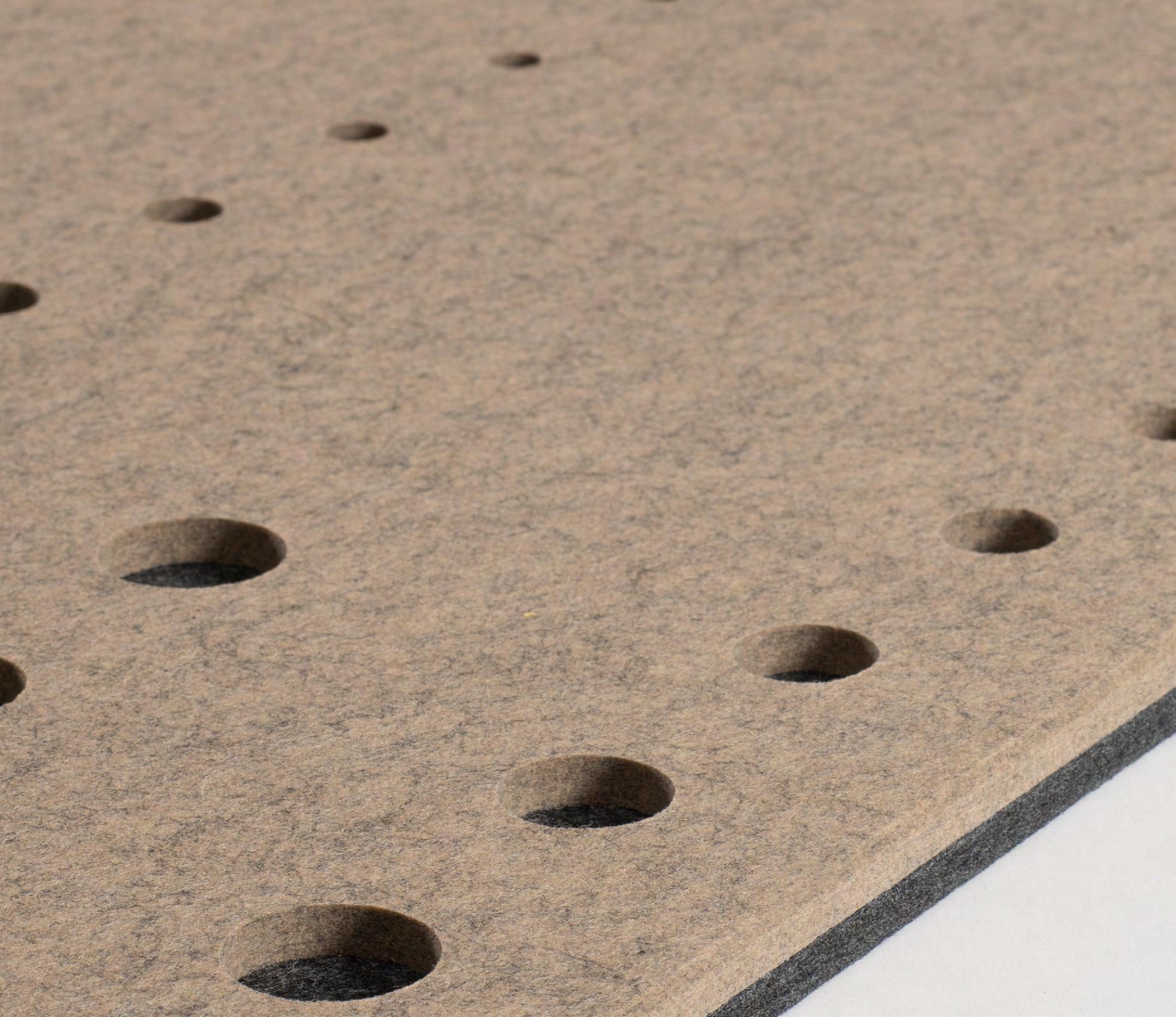 • Een PET-vilt akoestisch paneel met keuze uit 23 kleuren (zie p. 40) en optioneel een bedrukking (enkel op White - P001) of het V-cut patroon DP01.