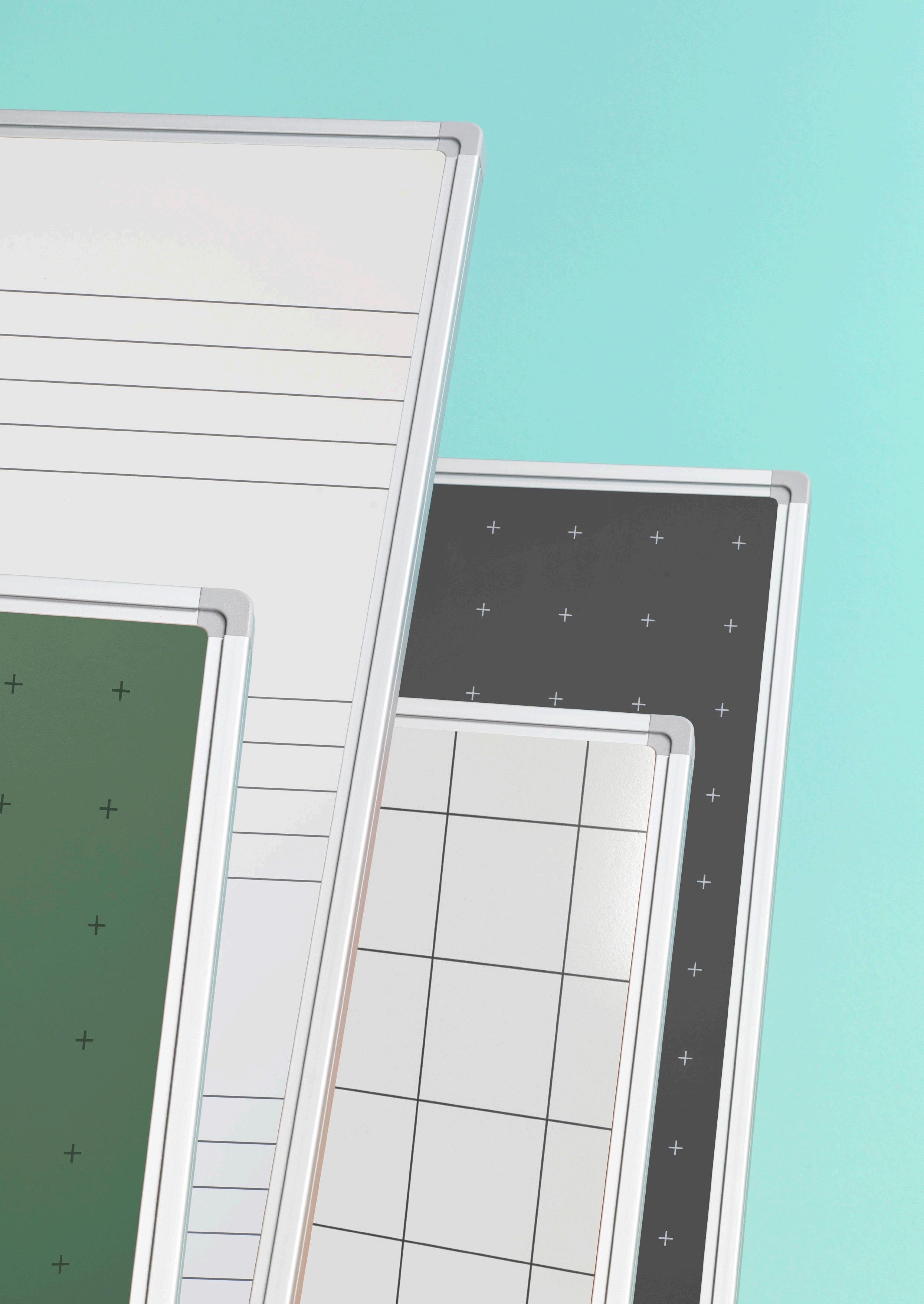 Borden met een emaille schrijfoppervlak (wit en krijt groen of grijs) kunnen worden voorzien van lineaturen, ruitjes of kruizen. De kwaliteit van dit oppervlak is exact hetzelfde als hetzelfde oppervlak zonder bedrukking. Ook voor deze oppervlakken garanderen we levenslang een perfecte beschrijf- en wisbaarheid.