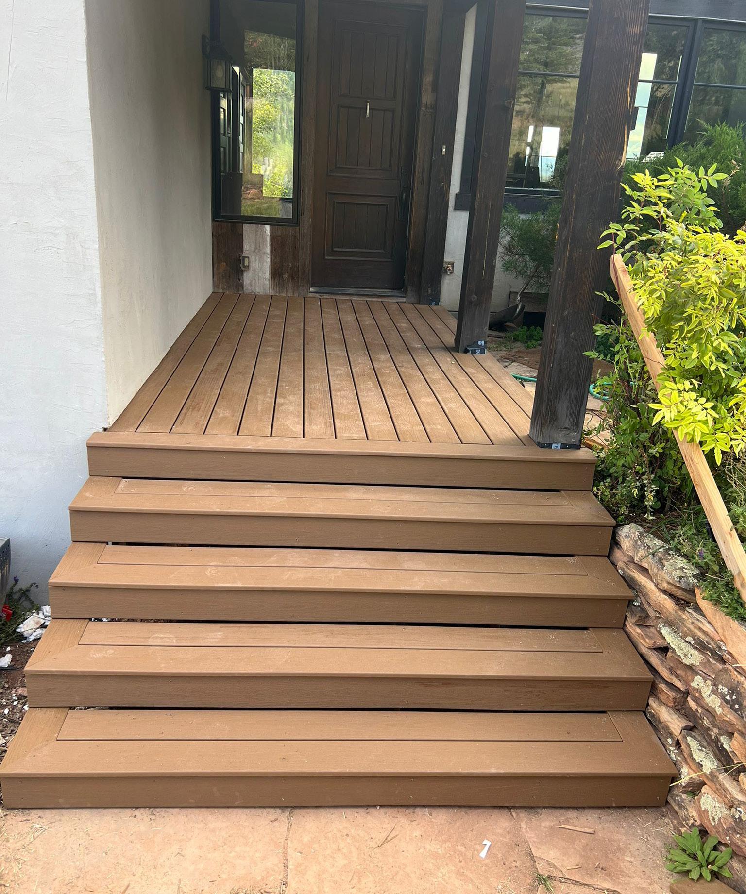Outdoor patio : The deck material is TimberTech that is engineered from 60 to 85% recycled content. This outdoor living products perform better than wood every time, and help homeowners create nature-inspired, sustainable outdoor living spaces that let them live their best lives outdoors for decades to come.