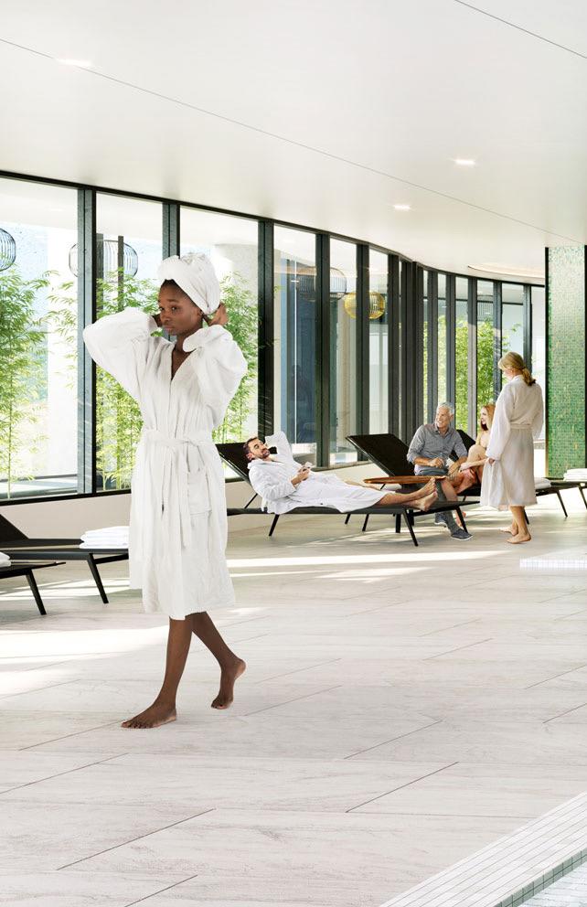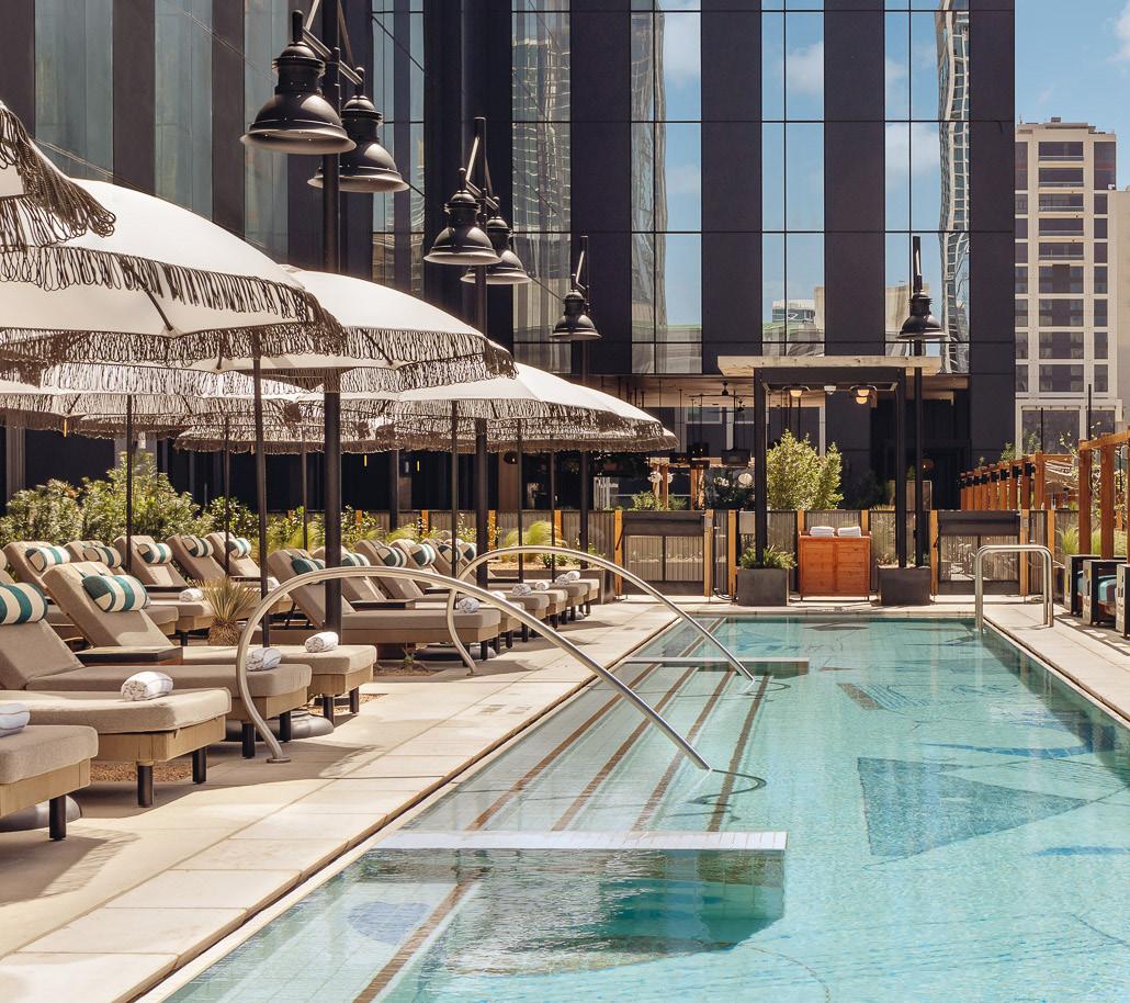 The indoor pool at Cirrus Luxury Condominiums offers residents the chance to unwind, socialize or embark on an enclosed swim in any season. Amenities throughout the building were carefully curated with hospitality and privacy in mind.