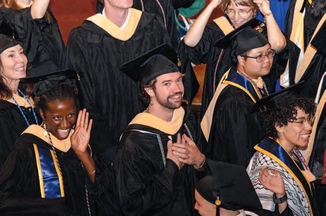 The 2025 Commencement Ceremony brought 97 M.S.W. graduates and four Ph.D. graduates together with their families to celebrate in John M. Greene Hall. The ceremony featured two student speakers: Wanja Kuria, M.S.W. ’25 and Maria MaldonadoMorales, Ph.D. ’25 as well as Miriam Yeung who delivered the keynote address. Iain Cooley, M.S.W. ’25, received the NASW Student of the Year Award.