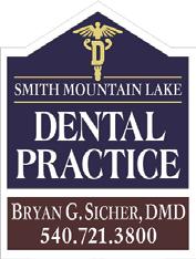 Your local, full service Dentist! Bryan G. Sicher, DMD www.smldentist.com Located next to Dairy Queen | Scruggs Rd., Moneta, VA YES! We are here! We provide Complete Care for you and your family. Specialty services are our routine. We place and restore Dental Implants all in our office. Our list of services is too long to print, so please call or stop by. We’d love to meet you. NEW PATIENTS ARE WELCOME Building Healthy Smiles Offering a full range of ser vices to the SML community for 29 years. Fellow of International Congress of Oral Implantologists PR O VIDER Now offering SAME DAY CROWNS with CEREC! Offering a full range of ser vices to the SML community for 32 years. Located next to Wake Cafe | Scruggs Rd., Moneta, VA Offering EXTRACTIONS, IMPLANTS AND SAME DAY CROWNS with CEREC!