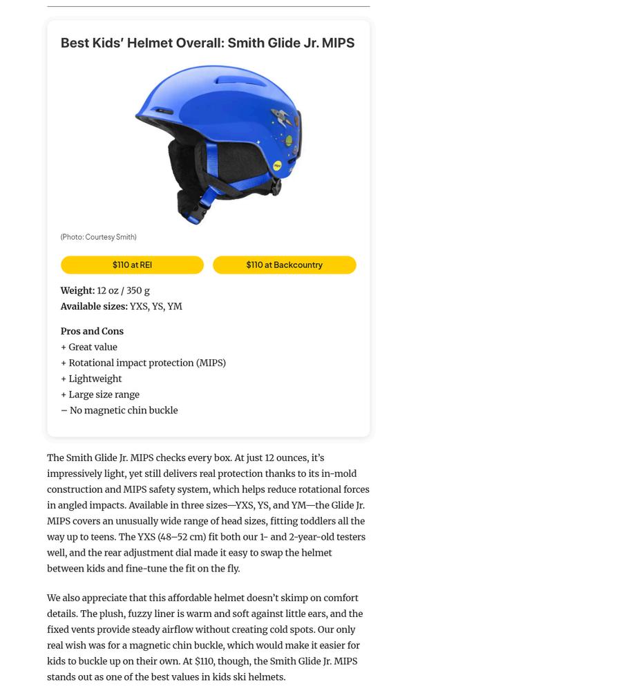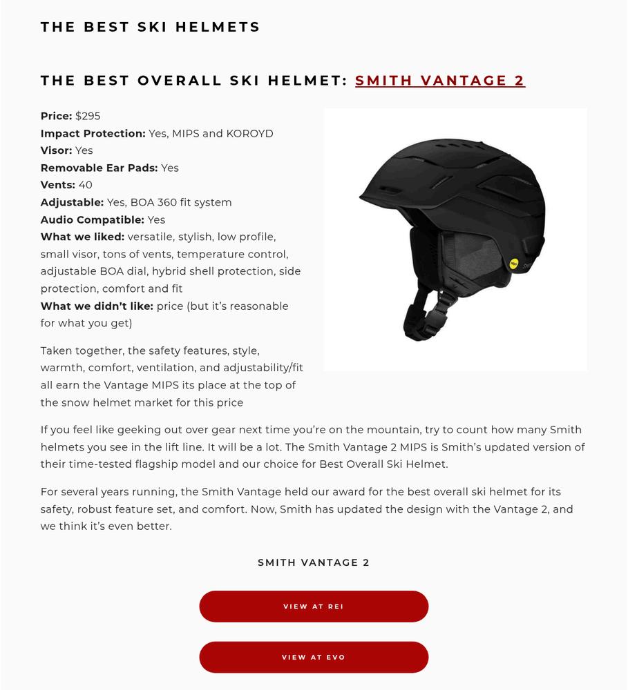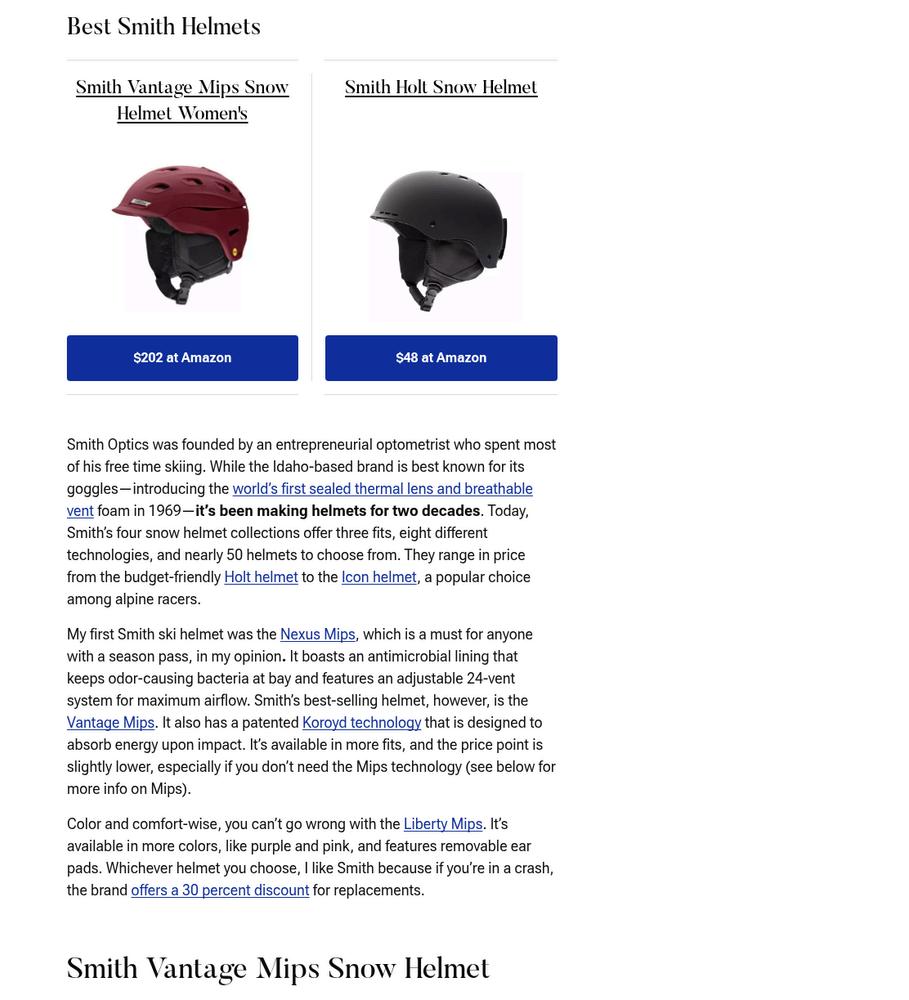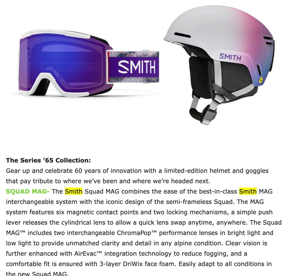 Smith Snow Helmet and Goggle Mention