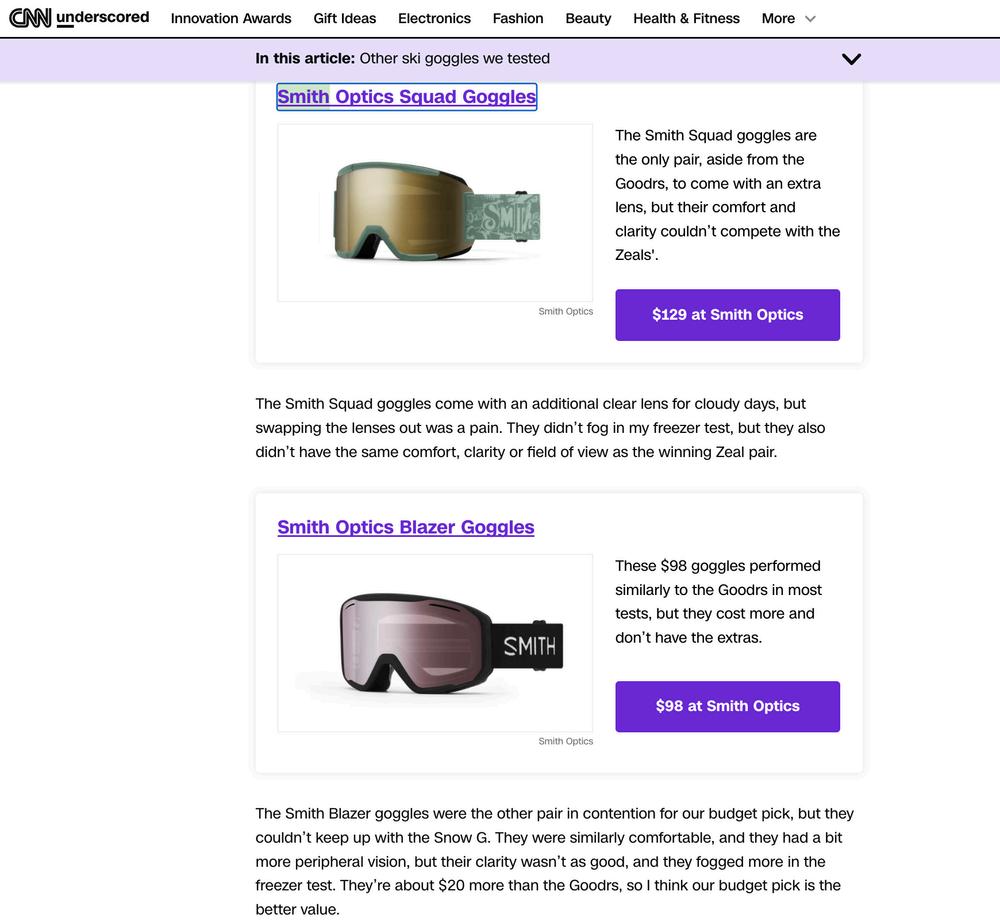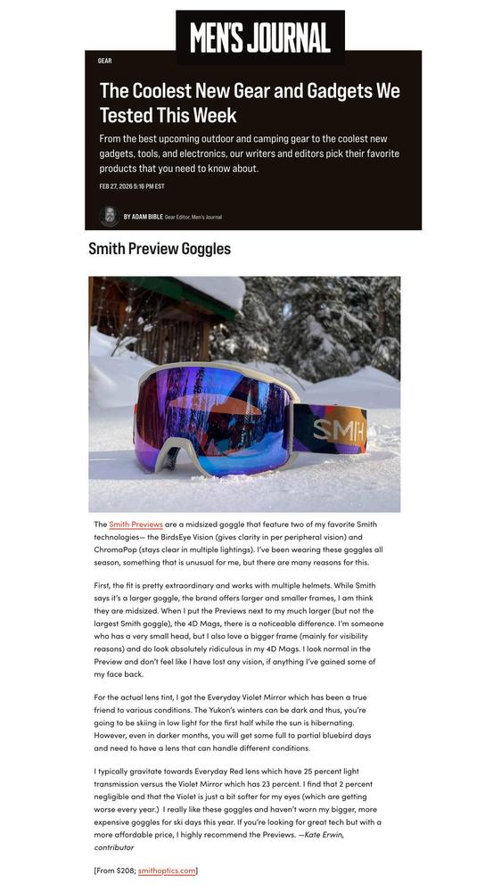 Smith Goggle Mention