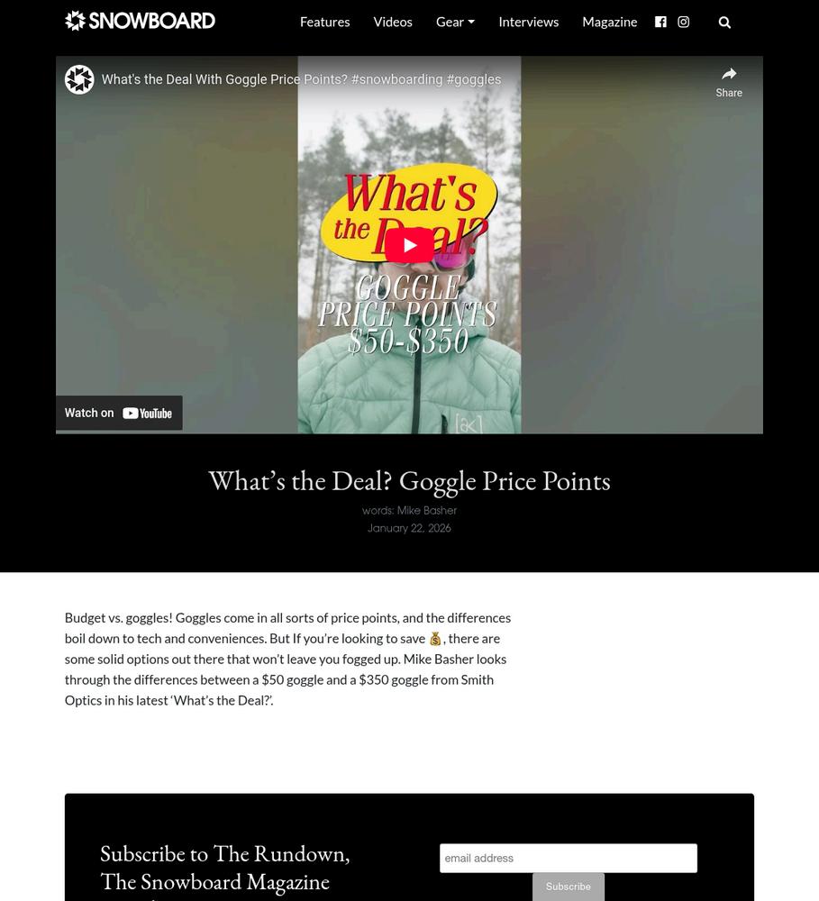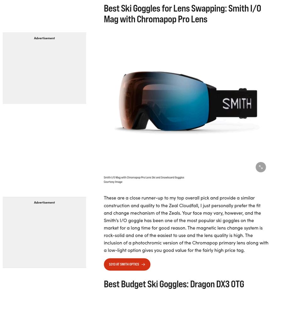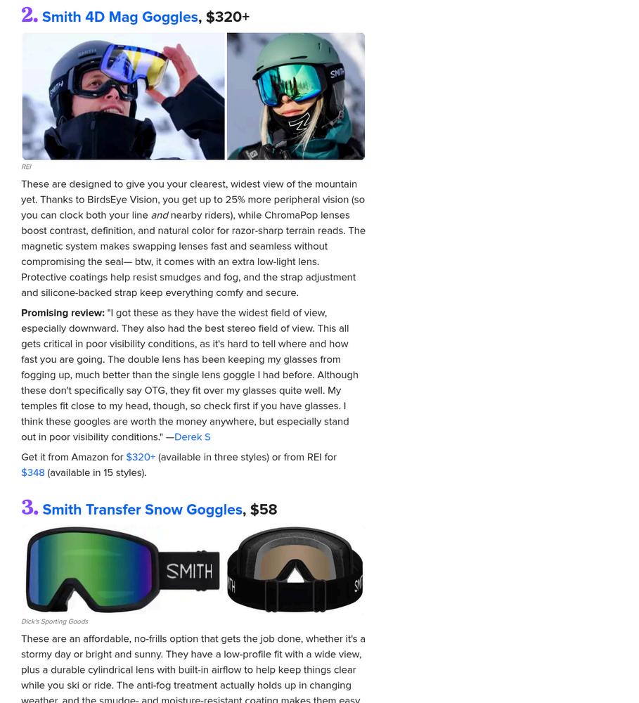 Smith Snow Goggle Mention