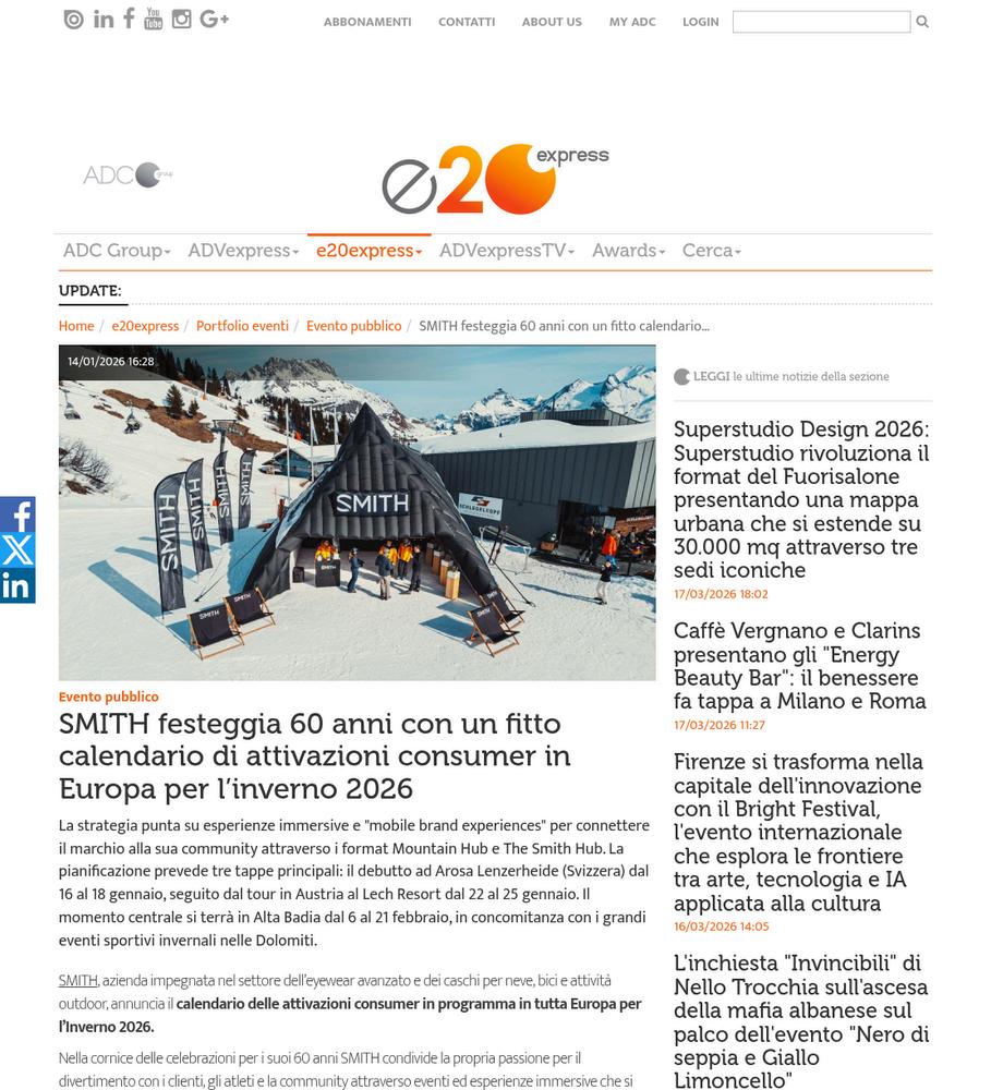 adcgroup.it/e20-express/portfolio-eventi/… Smith Announces Winter Activations Across Europe
