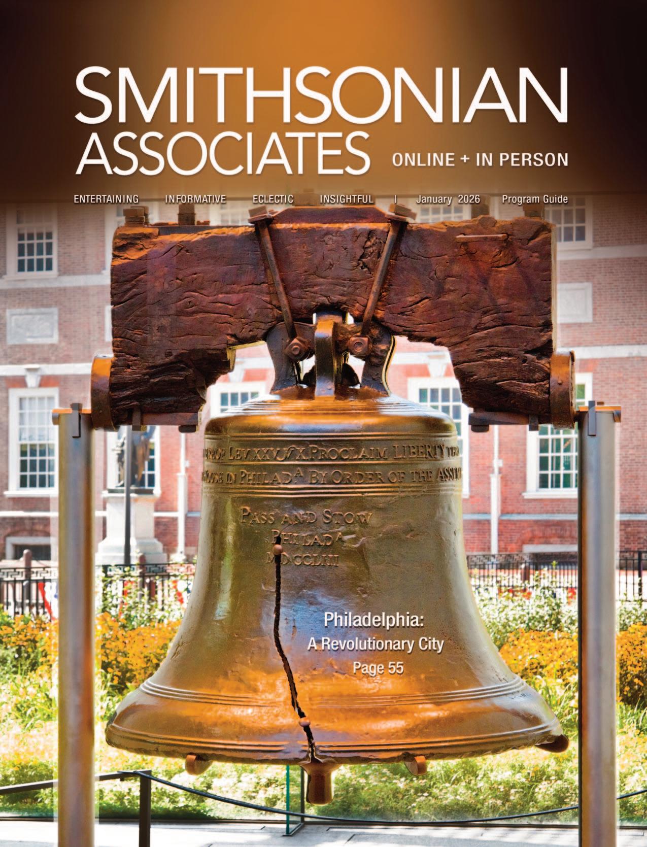 Smithsonian Associates will play a vital role in this effort throughout 2026, welcoming audiences to wide-ranging programs that illuminate the story of America and its people On the following pages, you’ll find offerings carrying the distinctive 250th logo—just a few among the many opportunities this year to discover, learn, and reflect together.