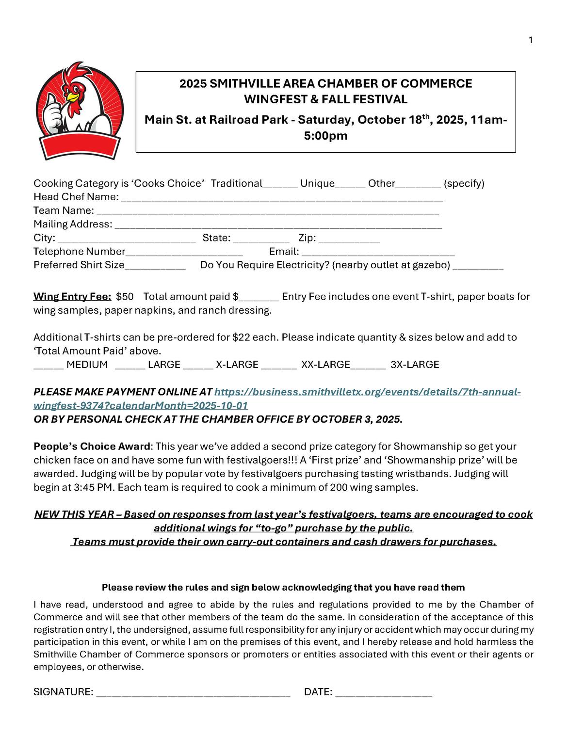 For more information on participating as a Cooking Team, or for Sponsorship opportunities, please visit the Chamber website, or contact Cathy Meek, Wingfest Chair, at 512-420-6755.