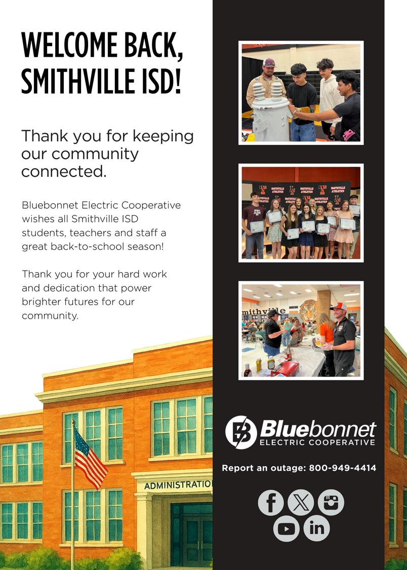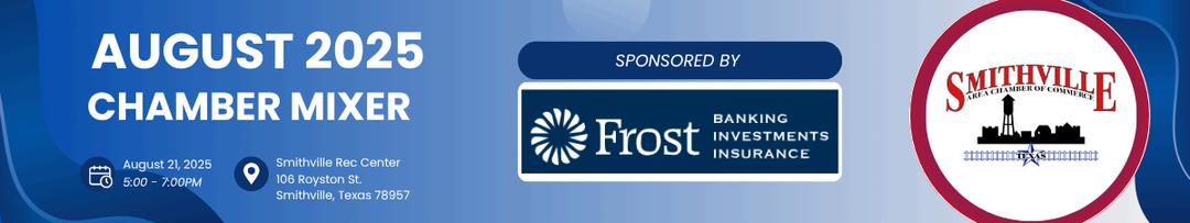 As we ease into fall, we want to extend a big thank you to Frost Bank for hosting a fantastic August Chamber Mixer, and to Dr. Molley Perry, Superintendent of Smithville ISD, for being our guest speaker at the Summer Chamber Luncheon. We’re grateful for your time and insight, and we look forward to your leadership as you guide Smithville ISD into a new school year filled with growth, opportunity, and andsuccessforourstudents,staff,andfamilies.