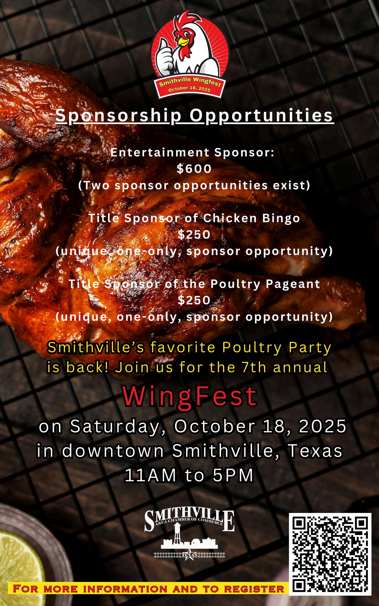 There’splentyhappeningthismonth!Don’tmisstheSmithvilleCommunity Clinic’smonthlyDiabetesClass,ourSeptemberMixerhostedbySmithville BrewingCompany,andbesuretoregisteryourteamforthe7thAnnual SmithvilleWingfestcominguponOctober18,2025 Also,aquickreminder we’recurrentlyacceptingnominationsfornewChamberBoardMembers,so considergettinginvolvedornominatingsomeonewhowouldbeagreatfit.