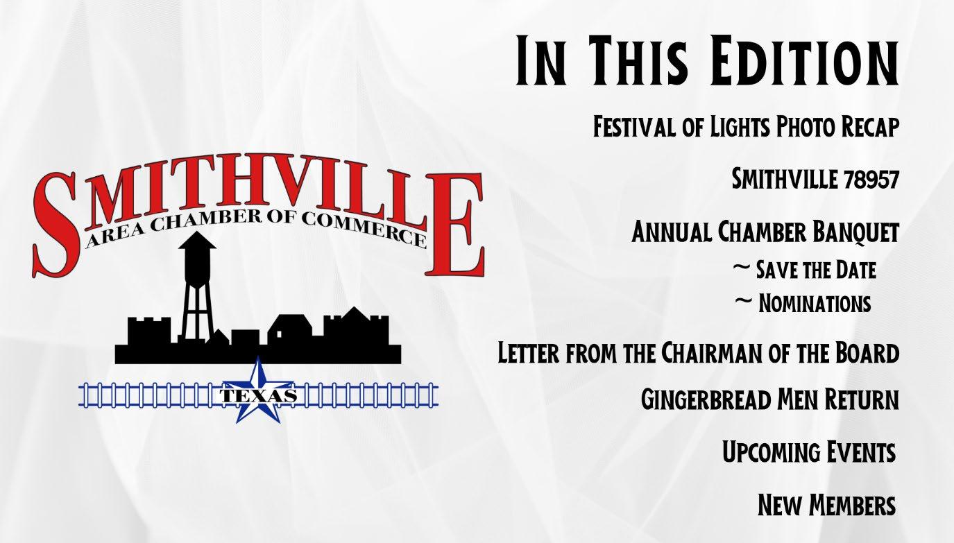 We are also looking at our extensive list of member benefits always with an eye toward improving your return on investment in our organization. Thank you for your steadfast support of the Smithville Area Chamber of Commerce.