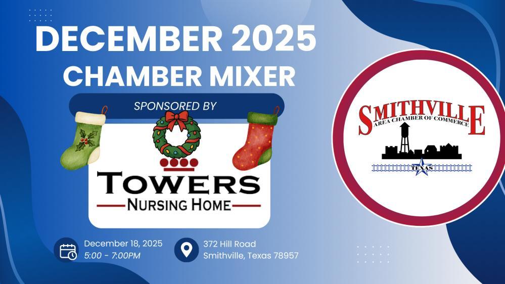 We’ll wrap up our holiday gatherings with the Annual Holiday Chamber Mixer on Thursday, December 18 from 5-7 PM at Towers Nursing Home on Hill Road. This is always a warm and festive evening, and we invite you to join us as we celebrate the season and another remarkable year in Smithville.