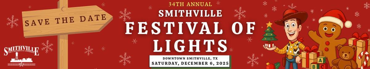 The excitement continues the next day with Smithville’s beloved 34th Annual Festival of Lights From 10 AM to 4 PM on Saturday, December 6, enjoy the Arts & Crafts Festival at the Smithville Recreation Center along with downtown vendors and family-friendly activities throughout Railroad Park. That evening, the celebration continues with the Lighted Holiday Parade, beginning at 7 PM in downtown Smithville, featuring this year’s theme: “A Smithville Toy-Story Christmas.” (Register by clicking HERE!)