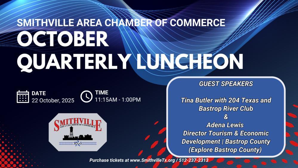 • Join us this Wednesday, October 22nd for our October Chamber Luncheon, where we’ll explore the exciting growth of the film industry in Bastrop County and its impact on local economic development .