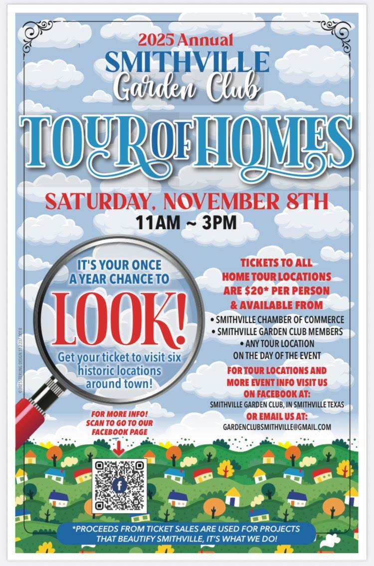 • And don’t miss the spooky fun at our Spooky Sip & Story this Friday, October 24th get your tickets now for a night of local legends and spirited storytelling! Our town is bursting with activities, so be sure to visit the Events tab on our website at www.SmithvilleTx.org to stay up to date on everything happening in and around Smithville.