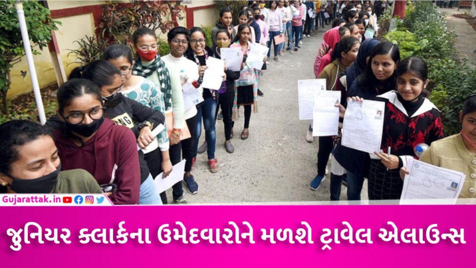 This announcement has been made on the website by the Gujarat Panchayat Seva Selection Board. Accordingly, it has been decided to give a travel allowance of Rs.254 to the candidates appearing for the Junior Clerk examination. For this the candidate has to download collator and give the bank details online. The latter will be credited to the adder's account between April 20 to April 30 after the completion of the examination. The deadline for filling this bank account information is from 1 pm on March 31 to 12.30 pm on April 9.