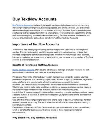 Buy TextNow AccountsIn today's digital world, owning multiple phone numbers is becoming increasingly important for privacy, business purposes, and online activities. One of the most popular ways to get an additional phone number is through TextNow If you're wondering why purchasing TextNow accounts might be a smart choice, you're in the right place! In this article, we’ll explore everything you need to know about buying TextNow accounts, the benefits, and why you should consider getting them from SmmPvait Buy TextNow Accounts