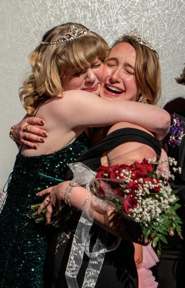4. Senior Ava Griffin reacts to her name being called Feb. 24 in the Main Gym. Griffin was crowned the 2024 Sweetheart Queen. “I was completely surprised, I invited my family to come to watch, and right before they said my name I thought ‘My whole family came to see me and I didn’t get crowned.’” photo by Ashley Broils