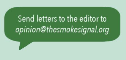 Send letters to the editor to opinion@thesmokesignal.org Letters under 300 words may be considered for publication and must include a full name and school af liation. The Smoke Signal reserves the right to edit for clarity and length.