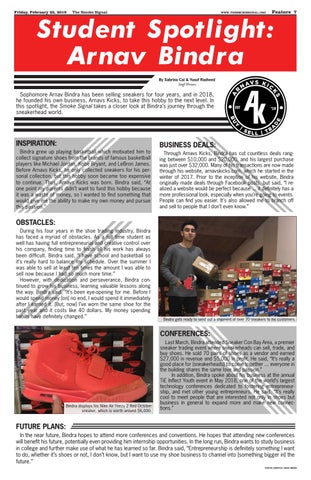 FUTURE PLANS: In the near future, Bindra hopes to attend more conferences and conventions. He hopes that attending new conferences will benefit his future, potentially even providing him internship opportunities. In the long run, Bindra wants to study business in college and further make use of what he has learned so far. Bindra said, “Entrepreneurship is definitely something I want to do, whether it’s shoes or not, I don’t know, but I want to use my shoe business to channel into [something bigger in] the future.” photos courtesy arnav bindra