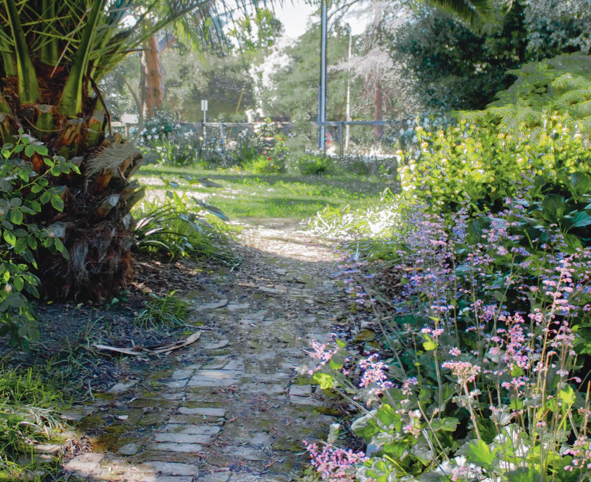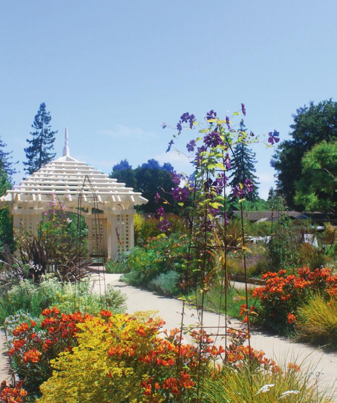 Located at 1431 Waverley St. in Palo Alto, Elizabeth F. Gam-ble Garden is a public space for all, only a 30 minute drive. It hosts spring tours that feature private gardens, shopping opportuni ties, ne dining, and more, and the Garden Fresh Luncheons spot lights fresh seasonal produce in beautiful and light lunches, many of which use the vegetables grown in Gamble Garden. Interspersed with towering trees, the ower beds burst with color, and shrubs section off pockets of serenity in the middle of a bustling city. The garden beds are labeled and organized, but brimming with blooms, making Gamble Garden a prime spot to visit for beautiful blossoms.