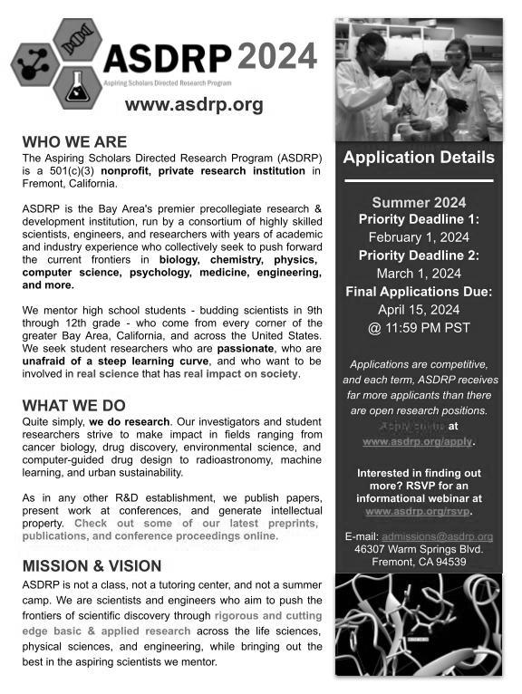 Padma Balaji, Hannah Bi, Rajorshi Chatterjee, Angelina Chen, Novak Chen, Navya Chitlur, Tanvi Deshmukh, Sahas Goli, Sally Han, Abha Kulkarni, Naisha Koppurapu, Jeffrey Li, Brittany Lu, Howard Lu, Ivy Lu, Trisha Parikh, Catherine Qin, Michael Qu, Daphne Senecal, Priyanka Shah, Arushi Singh, Stella Wang, Ethan Yan, Fiona Yang, Lucas Zhang, Alice Zhao