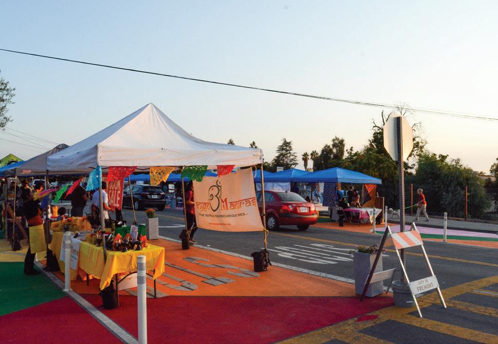 From September 9-10, the City of Fremont partnered with the Better Block Foundation to transform the intersection of Ellsworth St. and Washington Blvd. into the Better Block Party, a lively community event dedicated to reimagining the Mission San Jose area as a thriving neighbor hood and commercial district and introducing the rebuilt area. Highlighting the Fremont arts and cul ture scene with live entertainment, art exhibitions, and local business vendors, the two-day block party originated from a commission by Fremont City Council Member Raj Salwan in 2018. Salwan com missioned the City of Fremont to conduct retail and commercial study on the Mission San Jose dis trict and find opportunities in the area to implement placemaking, a community-centered approach to designing public spaces.