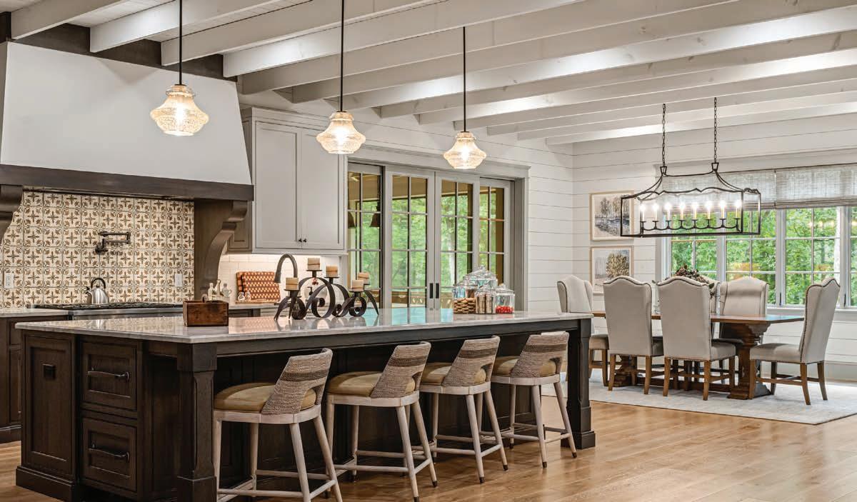 This exquisite home showcases luxury and one-level living with soaring vaulted ceilings, estoration ardware lighting, and an open oor plan that seamlessly connects the spacious great room, chef’s kitchen, and fully screened porch living, creating the perfect space for entertaining. The primary suite is a serene sanctuary with dual walk-in closets and lavish bath with a large shower and deep soaking tub. Well-appointed guest suites provide comfort and privacy. Mills River Crossing is a gated community with parks and a walking trail.