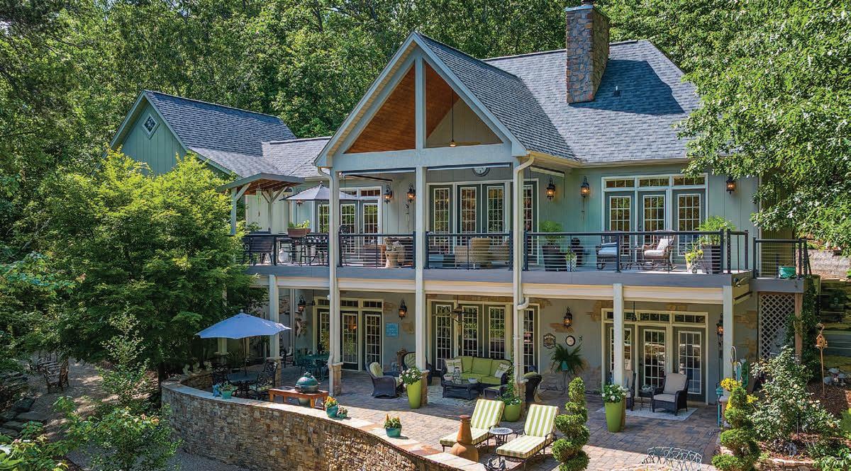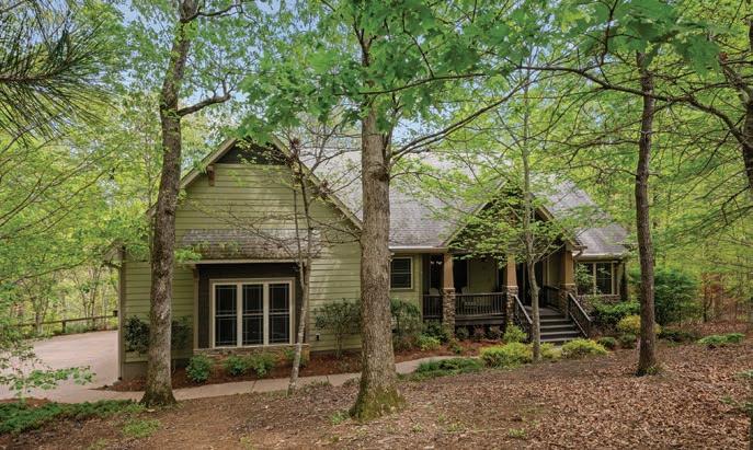 Idyllic lakefront home tucked in a private cove on Lake Adger—the perfect mountain getaway! Featuring year-round lake and mountain views, this home sits close to the water and has a gentle sloped yard with stone pathway to the lake and your own oating dock. his home checks all the bo es, including an open oor plan, a large versatile kitchen, warm pine wood oors, and a marvelous great room with a dramatic two-story stacked stone fireplace and vaulted wood ceilings. his is the lake li e